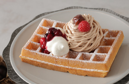 甘酸っぱいいちごの果実にブルーベリー・ラズベリーで彩りを添え、エスプーマポイップ・ピスタチオアイスをトッピングした冬限定のベリーワッフル。
