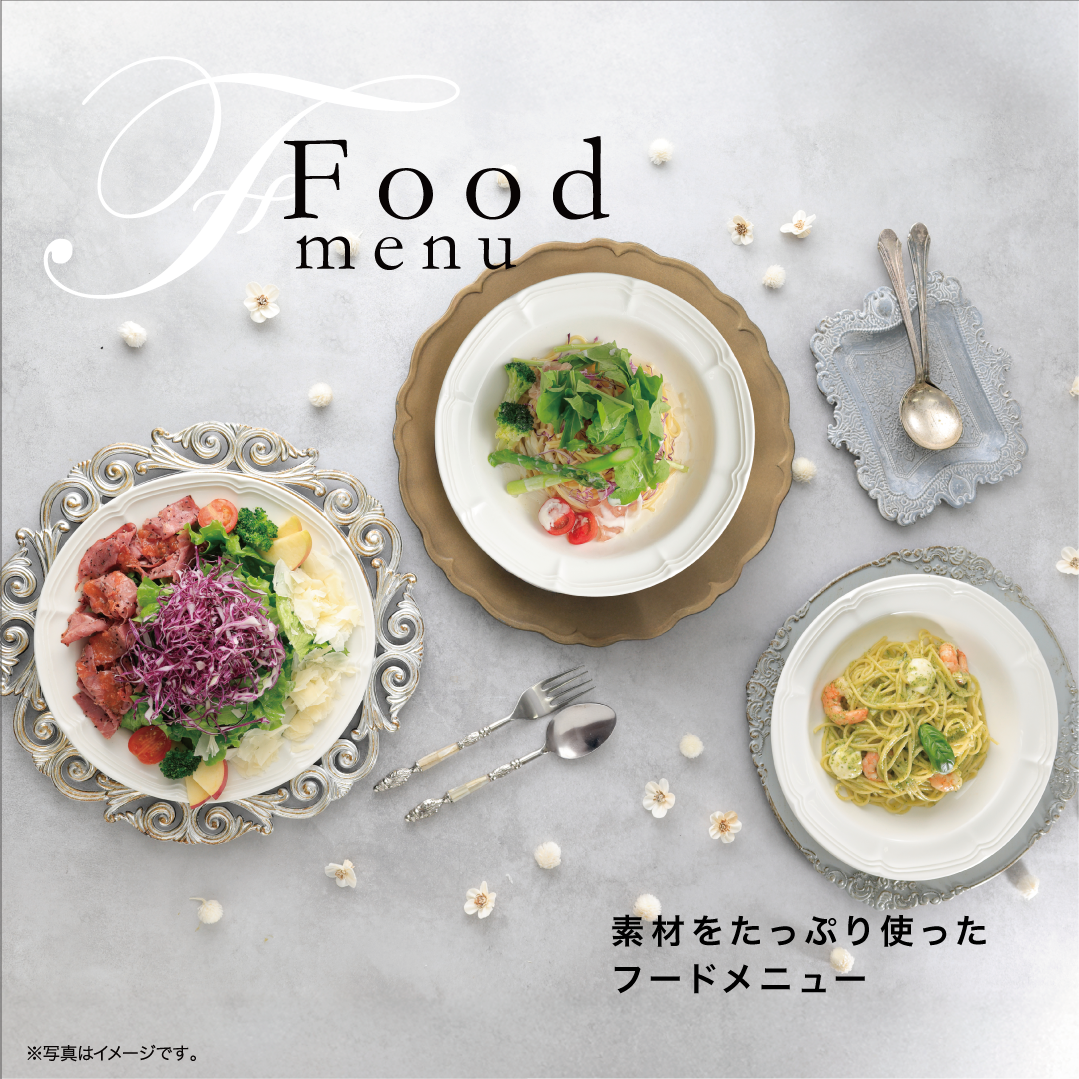 紅茶パストラミと削りパルメザンのごちそうサラダや生ハムと彩り野菜のペペロンチーノなど、春夏の季節メニューをお楽しみください。