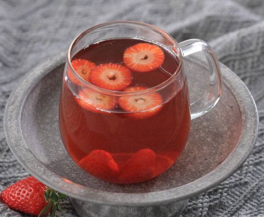 フルーツと相性の良いキャンディ茶葉の紅茶にいちごの果実と自家製のコンポート、お店で手作りのティーシロップを合わせ、優しい味わいのルシアンティーに仕上げました。